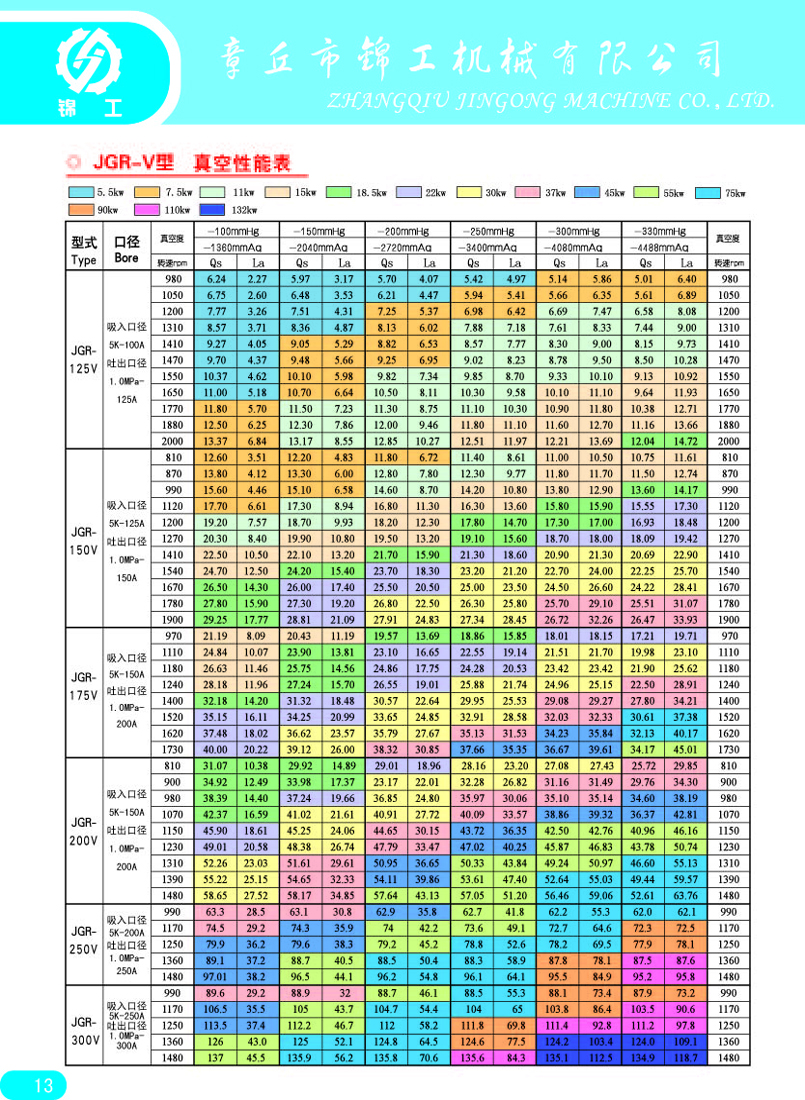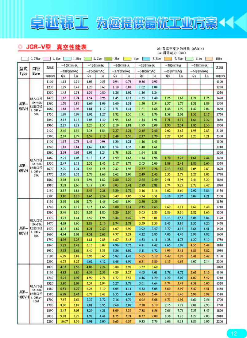 注:1、抽氣速率系指在配用推薦前級泵的條件下,羅茨真空泵的入口壓強在6650pa—2.66pa范圍內(nèi)所測得的最大抽氣速率。